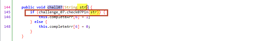 인자로 전달되는 문자열 값이 challenge_07.check07Pin의 인자로 그대로 전달되어