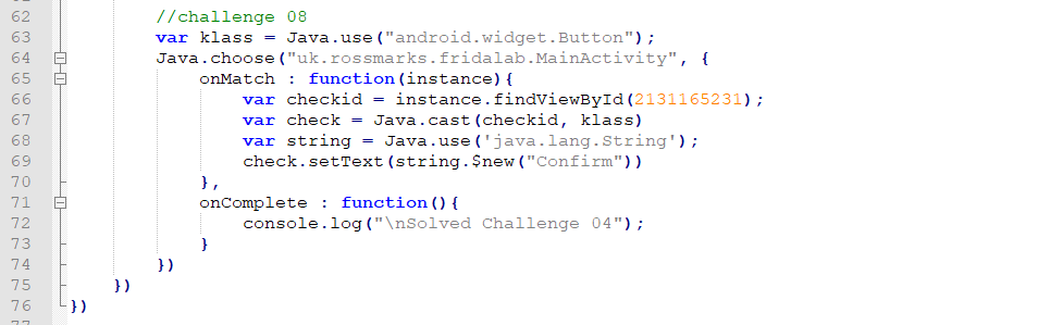 먼저, Java.choose 함수를 이용하여 인스턴스화 된 객체에 접근 후 findViewById()를 이용해 해당 값(2131...)을 가져온다.