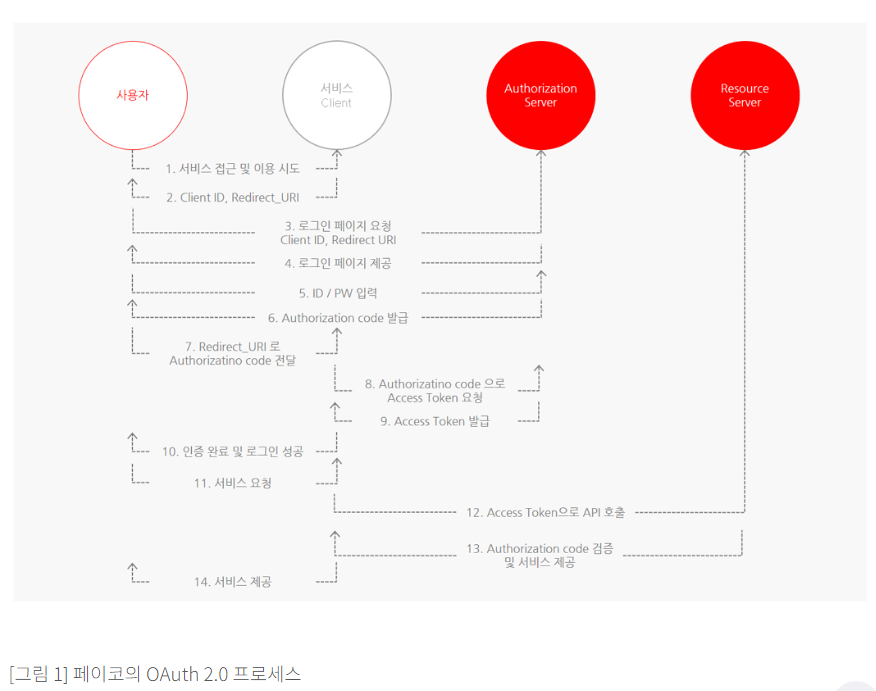 | 1. 기존 계정과 SNS 계정 연동 요청 2. 요청 SNS 로그인 페이지 출력 (Client ID 값이 포함된 로그인 페이지) 3. ID/PW 를 통해 SNS 계정에 로그인 4. 로그인 성공 시 인증 서버로부터 Authorization code를 발급 받음 (Authentication Server -> 사용자) 5. 발급 받은 code 값과 state 값을 Client 서버로 전송 (사용자 -> Client Server) 6. code 값과 state 값 검증 후 Client 서버에 로그인 되어있는 계정과 SNS 계정이 연동됨 |