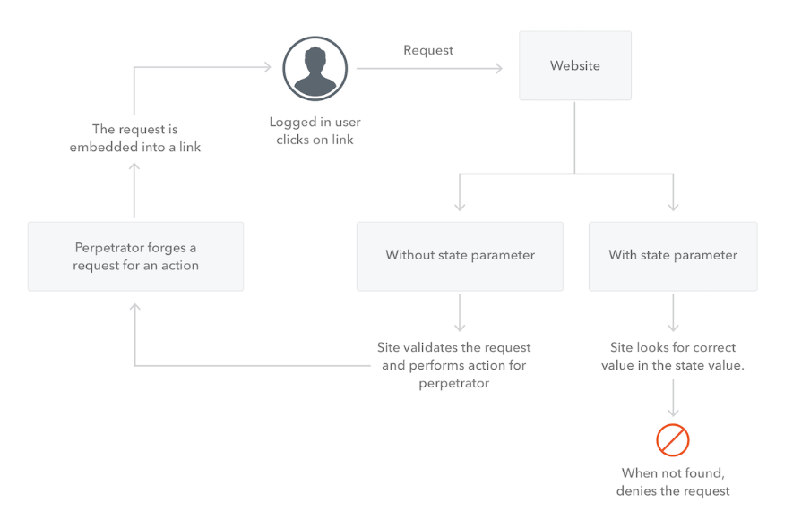 조금 더 자세히 말하자면, 인증을 시작할 시 인증 요청과 관련하여 고유하고, 추측할 수 없는 값이 동시에 발급되어 각 절차마다 해당 값이 일치한지 확인함으로써 비정상적인 공격을 막을 수 있게 해줍니다.